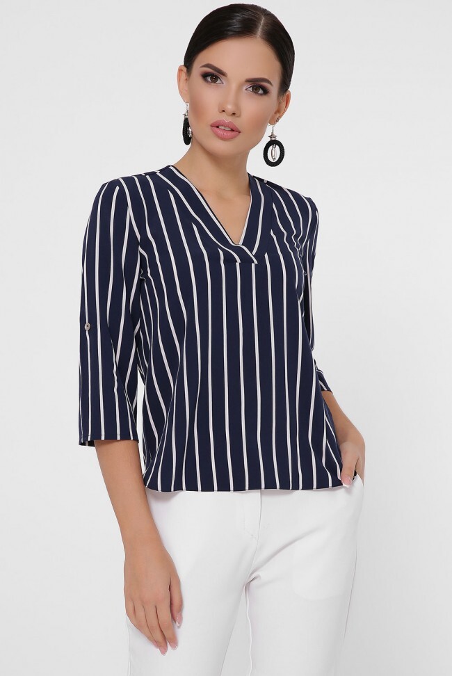 Блуза "Daisy" свободного кроя с V-образным воротником - планкой внахлест. По бокам круглые разрезы. Рукав 3/4 с ластиком. Длина блузы - 58 см Полуобхват груди - 44 см Длина рукава - 44 см