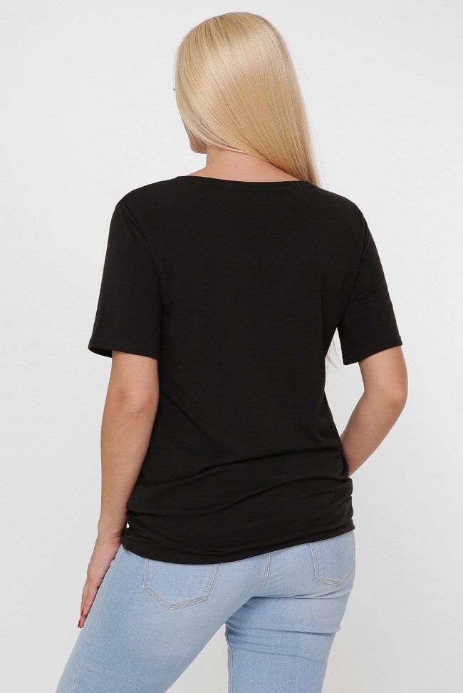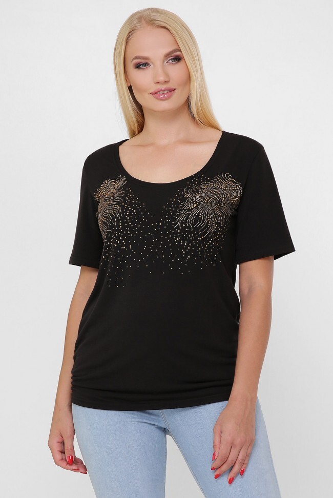 Длина футболки по спинке: 62 см Длина рукава: 25 см Футболка с аппликацией из камней