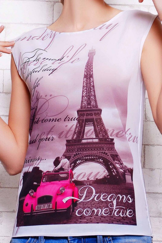 Молодежная футболка "Classic". Спинка изделия выполнена из мягкой вискозы, а передняя полочка из нежного шифона. Футболка оформлена оригинальным принтом "Розовая машина и башня". Модель весьма удобная и функциональная. Чудесно будет смотреться в паре с джинсами, юбками, шортами. Футболка "Classic" станет отличным вариантом для Вашего стильного повседневного образа. Длина футболки: 60 см