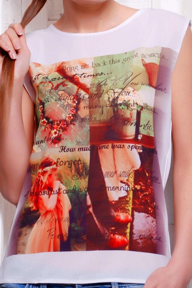 Стильная, своеобразная футболка "Classic" с дизайнерским принтом "Четыре картинки". Модель без рукавов. Задняя полочка выполнена из мягкой вискозной ткани, а передняя - из легкого шифона. Чудесно будет смотреться в паре с юбками, шортами, джинсами, леггинсами. Футболка "Classic" станет идеальным выбором для стильной, современной модницы. Длина футболки: 60 см