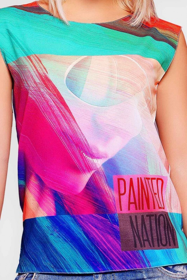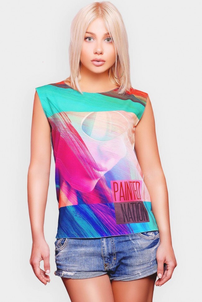Яркая футболка "Classic" прямого, свободного покроя. Представленная модель спереди оформлена эффектным, уникальным принтом "Painted Nation: девушка в очках". Выполнено изделие из двух видов ткани: передняя полочка - креп шифон Cпинка - вискоза. Модель без рукавов. Круглый вырез горловины. Такая футболка поможет создать вам неповторимый look. Длина изделия по спинке: 60 см