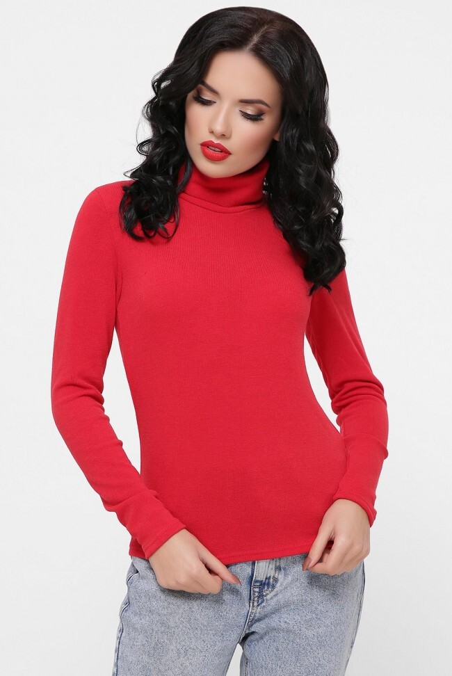 Женский гольф красного цвета. Замеры в (42) размере: длина по спинке 63 см, длина рукава 59 см.