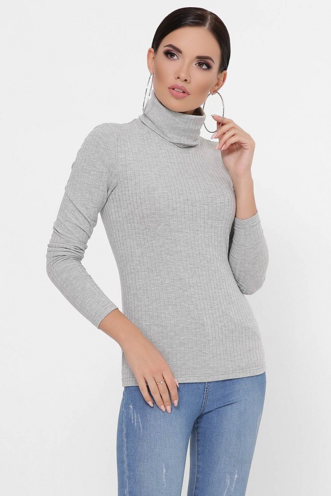 Светло-серый трикотажный гольф в рубчик с высоким двойным горлом. Базовая вещь женского гардероба, которая подчеркнет фигуру и согреет в холодную погоду. Замеры в (42) размере: длина по спинке 60 см, длина рукава 59 см, ширина горловины 18 см.