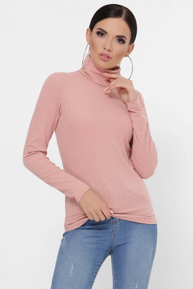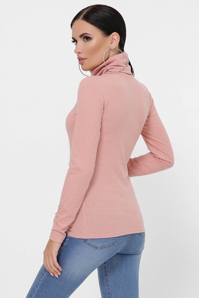 Персиковый трикотажный гольф в рубчик с высоким двойным горлом. Базовая вещь женского гардероба, которая подчеркнет фигуру и согреет в холодную погоду. Замеры в (42) размере: длина по спинке 60 см, длина рукава 59 см, ширина горловины 18 см.