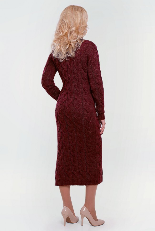 В осеннюю прохладную погоду теплое вязаное платье "LOLO" идеально подойдет стильной и обворожительной девушке. Модный цвет марсала идеально сочетается с любым типом кожи, лишь подчеркивая цвет лица. Рукава длинные, стянуты резинкой рибана, внизу сбоку разрез, чтобы явить миру вашу стройную ножку. Сочетание акрила с хлопком в пряже позволяет сохранить яркость цвета, а нитям остаться такими же прочными и стойкими. В платье "LOLO" тепло, комфортно и уютно, а это именно то, чего хочет девушка в холодную осень!