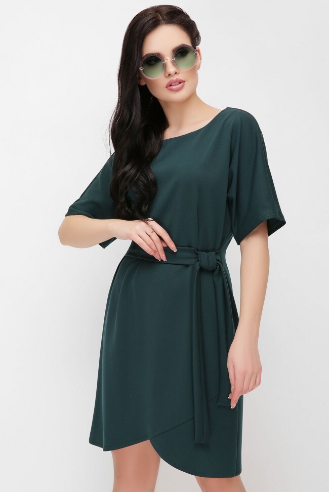 Прекрасное платье "Daniela" благодаря своему фасону "летучая мышь" сделает Вас неотразимой в любой ситуации. По талии складочки зафиксированы поясом. Низ по полочке фигурный. По центру спины молния: 50 см Длина платья по спинке: 94 см Длина рукава: 35 см Замеры по 42 размеру