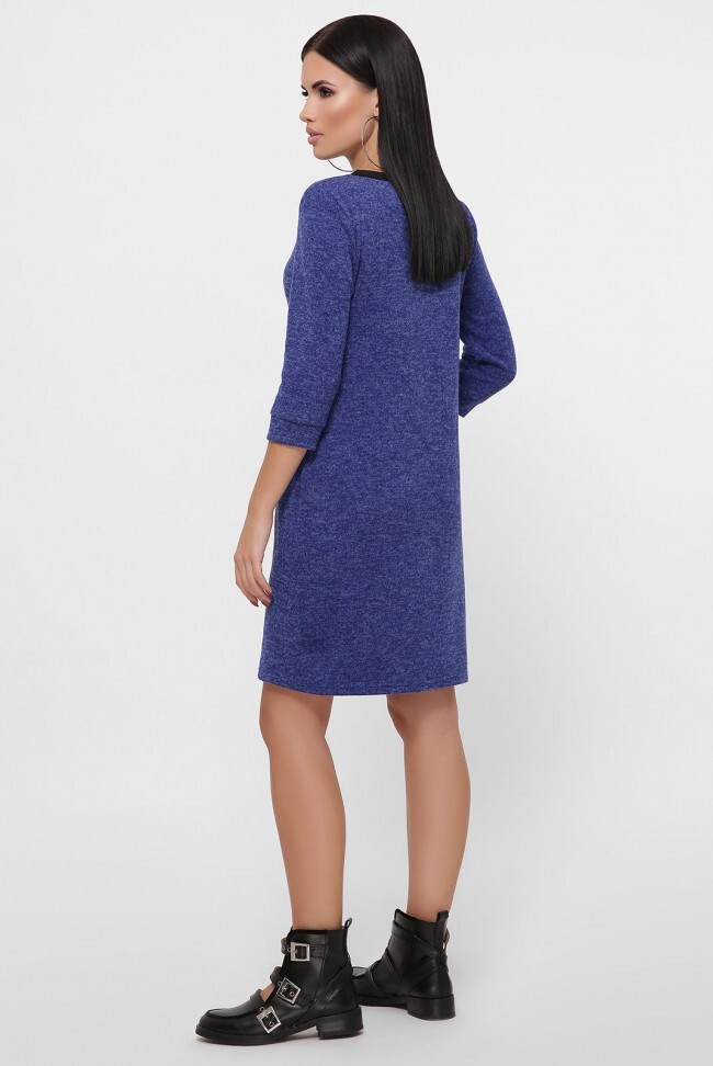 Теплое приталенное платье цвета синий электрик. Рукава 3/4 на манжете. Спереди карманы-обманки в виде молний. Замеры в (42) размере: длина платья 88 см, длина рукава 42 см, полуобхват по груди 45 см, полуобхват по бедрам 46 см.