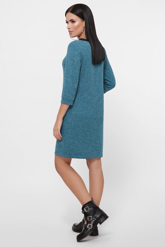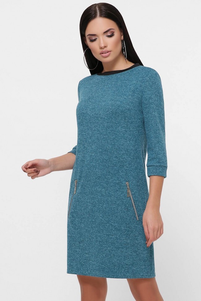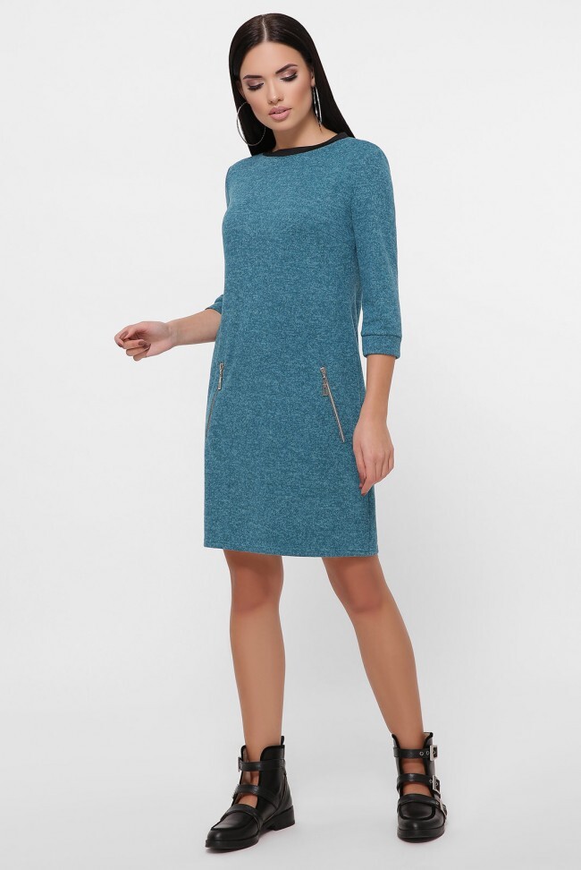 Теплое изумрудное платье приталенного кроя. Рукав 3/4 с манжетом. Спереди карманы-обманки в виде молний. Замеры в (42) размере: длина платья 88 см, длина рукава 42 см, полуобхват по груди 45 см, полуобхват по бедрам 46 см.