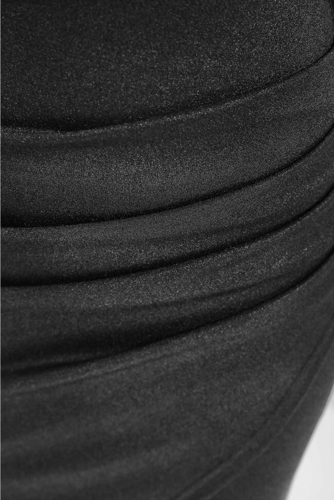Платье приталенного кроя с открытыми плечами. С левой стороны склады в боку, юбка силуэта уходит в запах. Рукав реглан. Длина платья по спинке: 85 см Длина платья по полочке: 85 см Длина рукава: 35 см