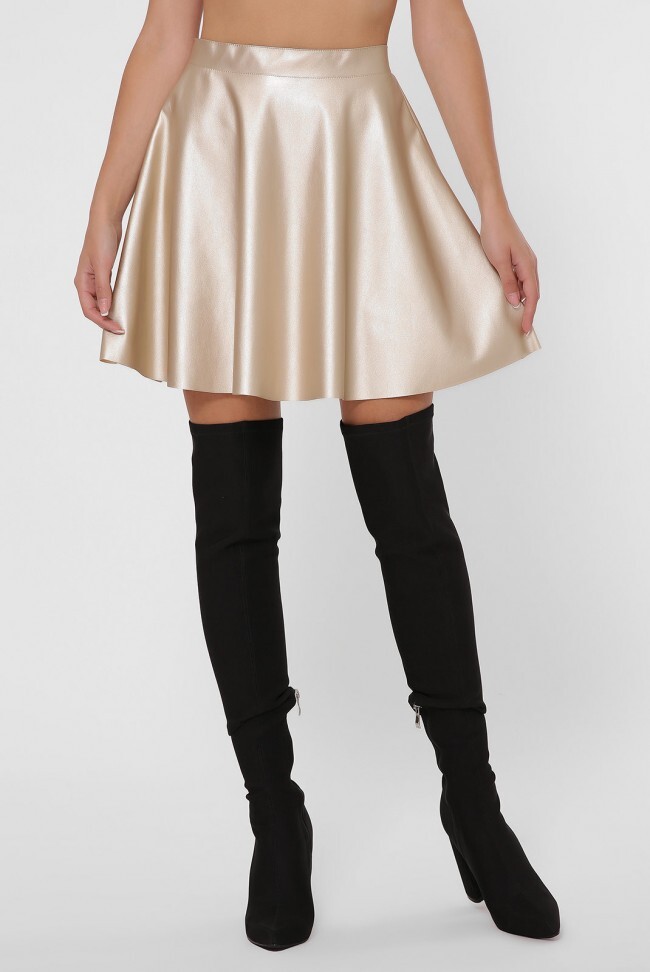 Молодежная юбка - солнце из экокожи металлических цветов. В этой юбке Вы будете определенно неотразимы. Сзади потайная молния - 20 см. Длина юбки - 44 см Полуобхват талии - 34 см