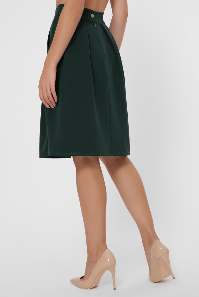 Великолепная юбка в темных тонах придаст Вашему облику утонченности и легкости. Спереди и сзади на юбке заложены глубокие бантовые склады. По бокам косые карманы. Сзади потайная молния - 17 см. Длина юбки - 61 см Ширина пояса - 5 см