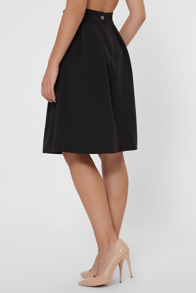 Великолепная юбка в темных тонах придаст Вашему облику утонченности и легкости. Спереди и сзади на юбке заложены глубокие бантовые склады. По бокам косые карманы. Сзади потайная молния - 17 см. Длина юбки - 61 см Ширина пояса - 5 см