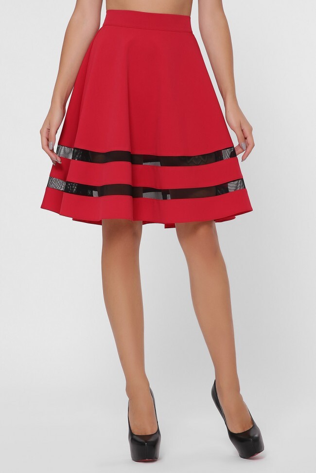 Очень интересная юбка - полусолнце. Оригинальные вставки из сетки внизу по кругу юбки придадут Вашему образу особенную легкость. Сзади потайная молния - 16 см. Длина юбки с учетом пояса - 56 см Ширина пояса - 4 см