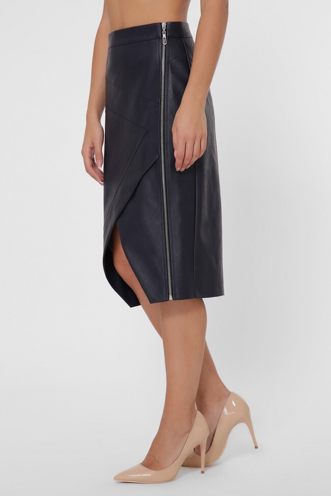 Оригинальная юбка не менее оригинального кроя. Передняя полочка спереди разрезана на декоративные детали. Ближе к боковому шву вшита рабочая молния по всей длине юбки. Длина юбки с поясом - 67 см Длина спереди до разреза - 47 см Ширина пояса - 4 см Полуобхват бедер - 45 см