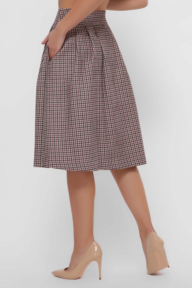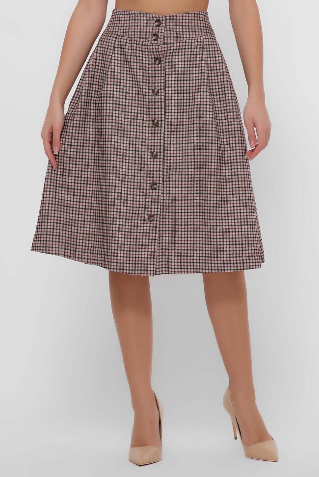 Свободная юбка миди в красную клетку на пуговицах. По переду планка с рабочими пуговицами, по бокам врезные карманы. Замеры в (42) размере: длина юбки 65 см, полуобхват по талии 36 см, ширина пояса сзади 6 см, ширина пояса спереди 7 см.