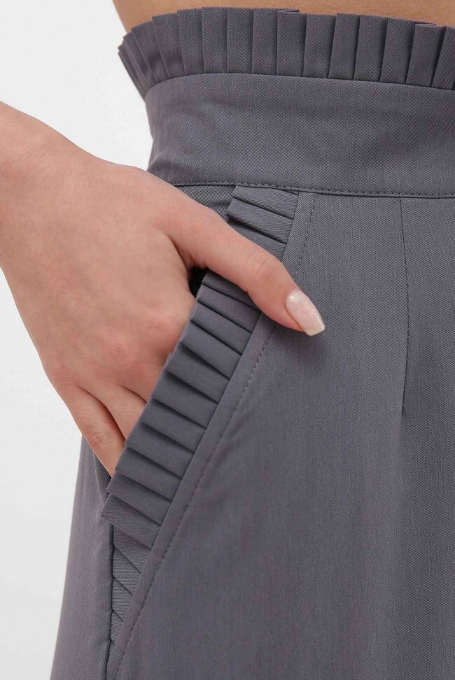 Элегантная серая юбка-карандаш с рюшами по карманам и поясу. Юбка сшита из тиара и имеет разрез спереди. Замеры в (42) размере: длина юбки 65 см, полуобхват по талии 35 см, полуобхват по бедрам 44 см.